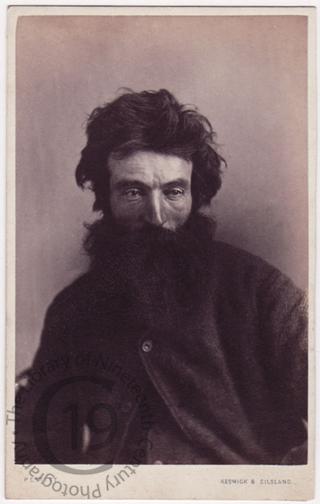 A pencilled inscription in a period hand on the back of the mount reads simply: 'The Man of the Woods.' It came with another portrait showing the same man standing full-length; he's bare-footed and his clothes look worn and dirty, so the title can probably be taken at face value.